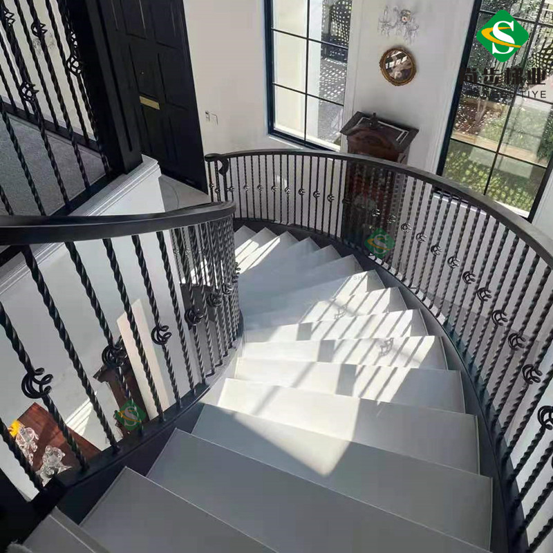 广东佛山尚步梯业厂家定制生产钢结构弧型楼梯铁艺护栏大理石踏板