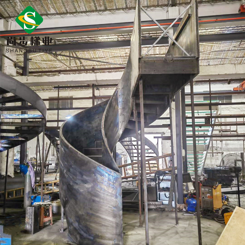 大型钢结构弧形微旋转楼梯,双层卷板龙骨,高栏板高钢板楼梯, 客户可提供图纸或样品,颜色,尺寸,来图来样定制。
